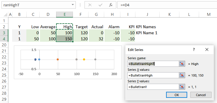 - the series X value comes from cells E3:E4 (range “ranHigh”),