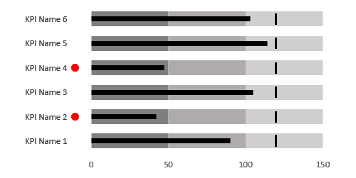 You’ll have to adjust chart or plot area sizes so that the label doesn’t overlap the alarm. After these changes, the bullet chart should look like this: